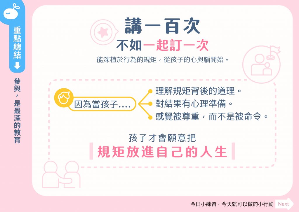 真正有效的方式,是讓他們「參與」(理解)規矩的制定過程!