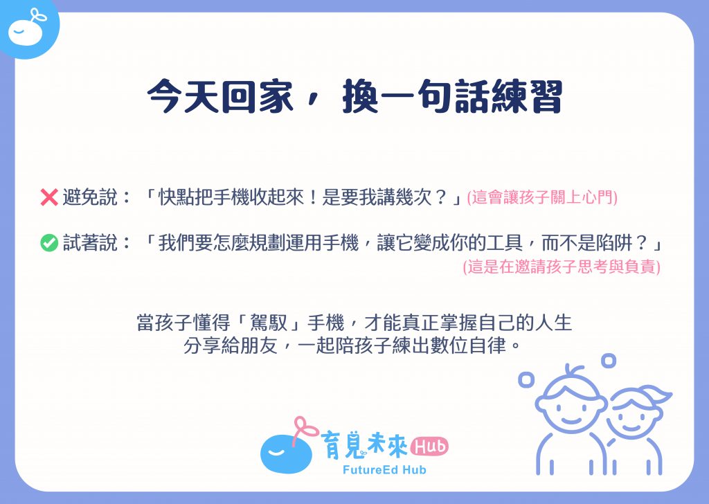 📌讓手機變成可以一起討論的話題,而不是家中衝突的源頭。